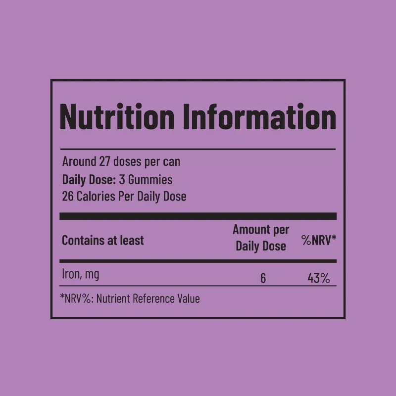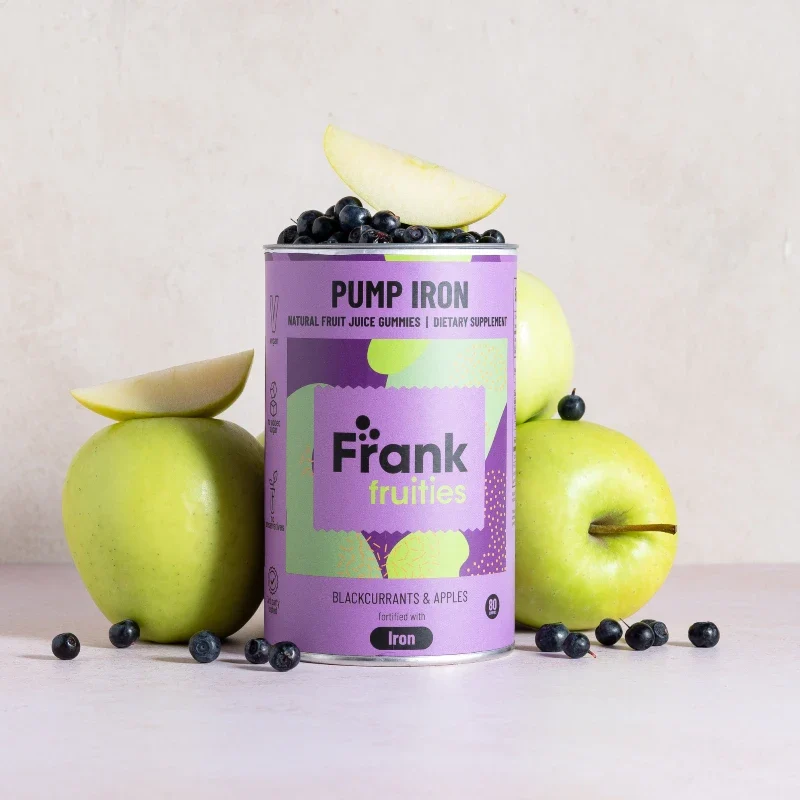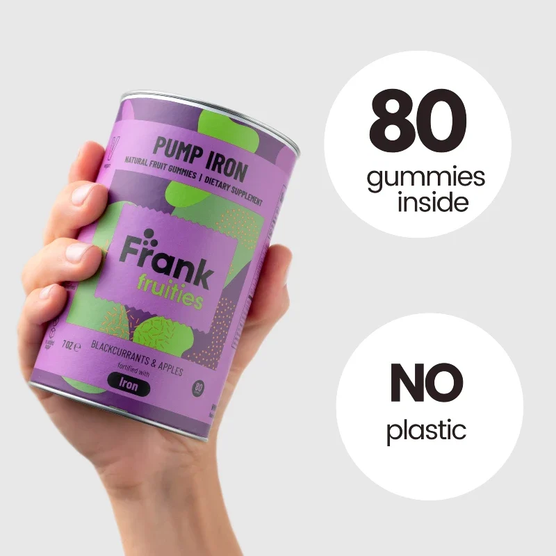 Pump Iron – geležies guminukai su juodųjų serbentų ir obuolių skoniu, sukurti tiems, kurie nori papildyti geležies atsargas be „metalo poskonio“ ir be nemalonaus diskomforto. Švelni, augalinė formulė patogiai padeda užtikrinti organizmui reikalingą geležies kiekį kasdien, kai svarbus geras energijos lygis, ištvermė ir bendra savijauta.