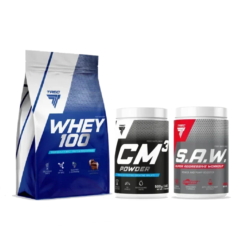 „Raumenų masės didinimo rinkinys“ yra skirtas tiems, kurie siekia greito ir efektyvaus raumenų augimo. Šis rinkinys aprūpina organizmą reikalingais baltymais, kreatinu ir prieštreniruotinėmis medžiagomis, padedančiomis pagerinti treniruočių kokybę, padidinti jėgą ir užtikrinti raumenų atsistatymą.