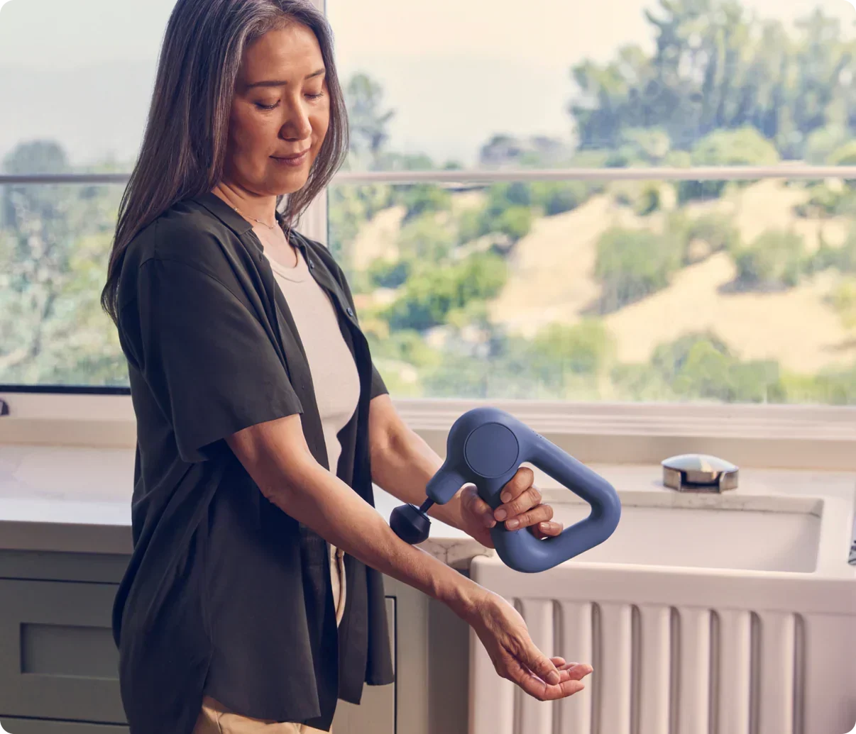 Theragun Relief – tai lengvas, patogus ir paprastai valdomas perkusinės terapijos masažuoklis, skirtas kasdieniam naudojimui. Sukurtas žmonėms, ieškantiems veiksmingo, bet švelnaus būdo sumažinti raumenų įtampą, diskomfortą ar skausmą namuose, darbe ar kelionėse.